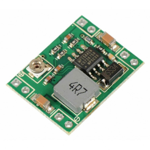 Compacto regulador de voltaje DC-DC basado en el chip MP1584EN, ideal para proyectos con microcontroladores y sistemas de robótica. Permite convertir tensiones de entrada entre 4.5 V y 28 V a una salida ajustable entre 0.8 V y 20 V, con una corriente máxima de 3 A (recomendada hasta 2 A continuos con buena disipación).